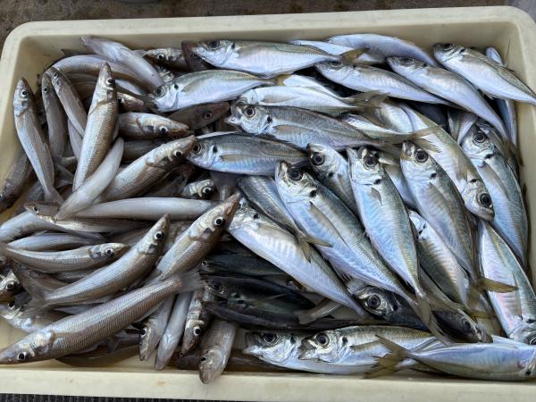 アジからスタートし手前のポイントを転々とするも前回と様子が違い型みるのみ、中々貯まっていくようなポイントにハマれず早めに見切りをつけ大きく南下しました。ぽつりぽつりと釣れ後半はダブル連発で何とかおかず確保でした。アジに時間を費やしてしまい、キスはお昼からのスタートになりましたが、前回より多少あたりは落ちるもポツポツと釣れてくれ両魚ともお土産確保でした。 アジは小ぶり主体に中〜良型まじり、 シロギスは良型主体でした
