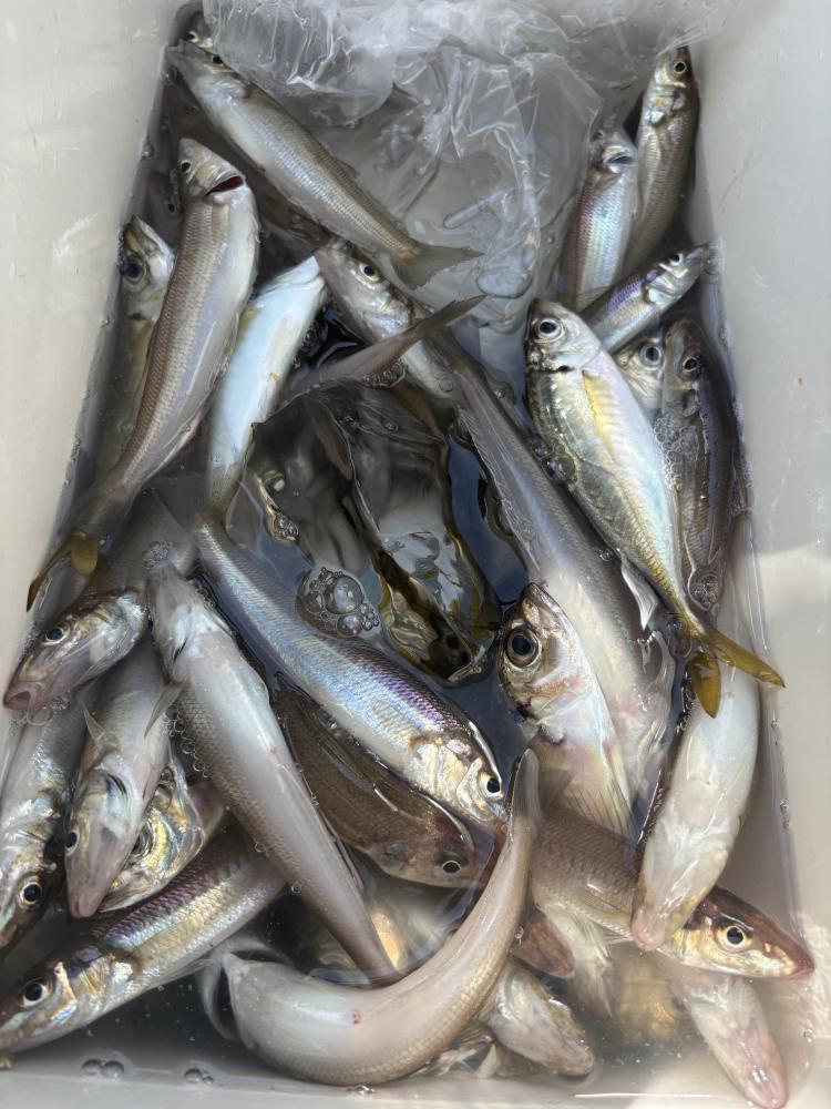 アジからスタートし前回の周りへ 開始から型は見れたものの子フグが複数来てしまい早めに見切りをつけ移動しました。その後は特大反応ありコマセが効いてくると小ぶり主体に中型混じりでポツポツと釣れ続きました。早めにシロギスに切り替え転々としましたが派手な盛り上がりはないもののポツリ、ポツリと釣れました。ラスト1時間は探索へ行きパラパラと全体的に釣れてくれました。シロギスは小ぶり〜良型までバラバラでした。